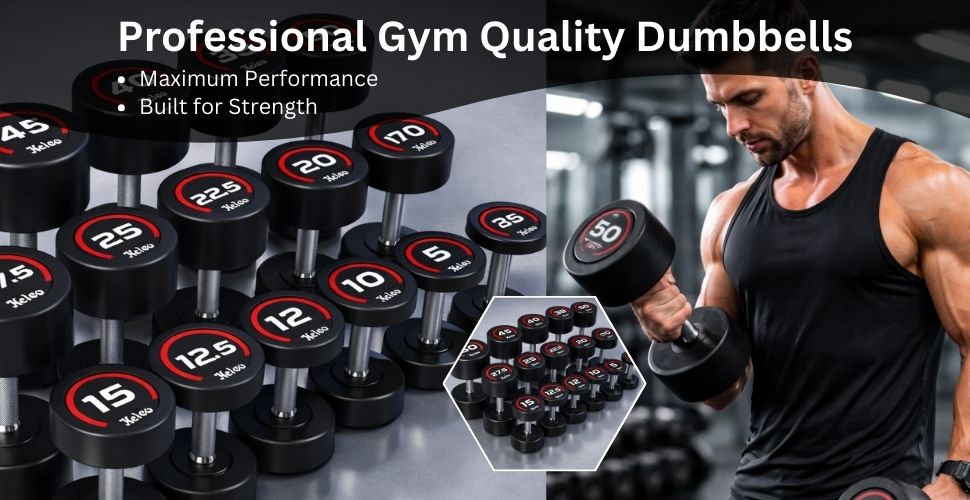 Ergonomically Designed Premium Rubber Encased Round Dumbbells. Duplex high quality chrome grip for longer rust-free life. Material: Top quality low odour rubber for great workout and reduced noise in case of accidental drops. Grip: Chrome plated handle with continuous seamless knurling ensures solid grip. Sizes Available: 2.5kg to 30kg in increments of 2.5kg. 30kg to 50kg in increments of 5kg Built for durability, performance, and a premium training experience, Nelco Round Dumbbells are designed to meet the demands of commercial gyms, professional training centres, and serious home users. The solid round heads are encased in high-quality, impact-resistant rubber that minimizes noise, protects flooring, and ensures long-term durability even under heavy use. Each dumbbell features a precision-machined, duplex chrome-plated steel handle that offers exceptional strength, corrosion resistance, and a balanced feel in hand. The ergonomically contoured grip provides secure handling during heavy lifts, while the smooth-to-textured transition ensures comfort across high-rep and power movements alike. Clear, embedded silicone branding and weight markings add a premium finish while ensuring easy identification and long-lasting visibility. Note: Dumbbells starting from 12.5Kg onwards are shipped individually, so you will receive 2 packages each containing a dumbbell. The package weight and dimensions provided are for a single dumbbell.