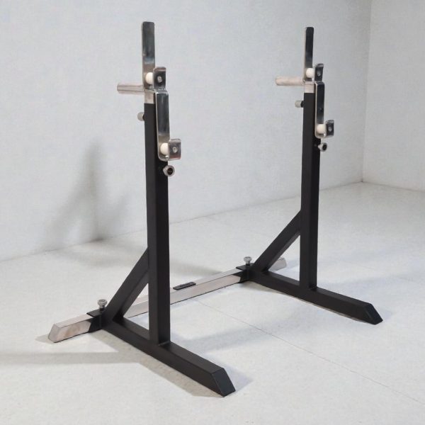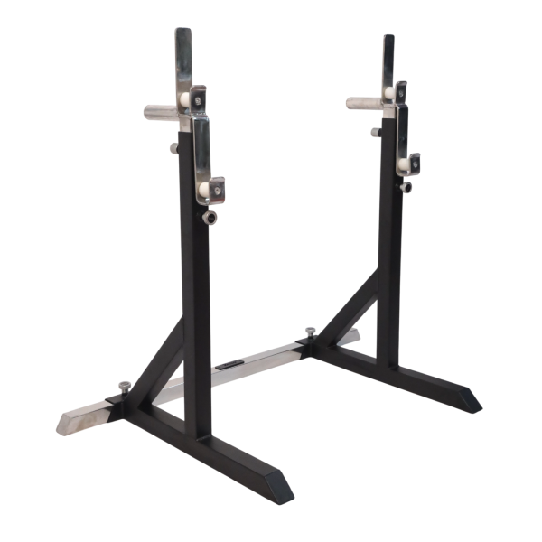 Constructed from heavy-gauge steel, the frame offers exceptional rigidity while maintaining a compact footprint suitable for both training halls and competition platforms. The height-adjustable uprights allow for fast, accurate bar positioning, secured by robust locking pins for maximum safety under heavy loads. Precision-finished J-hooks ensure smooth bar placement and reduced wear on barbell knurling